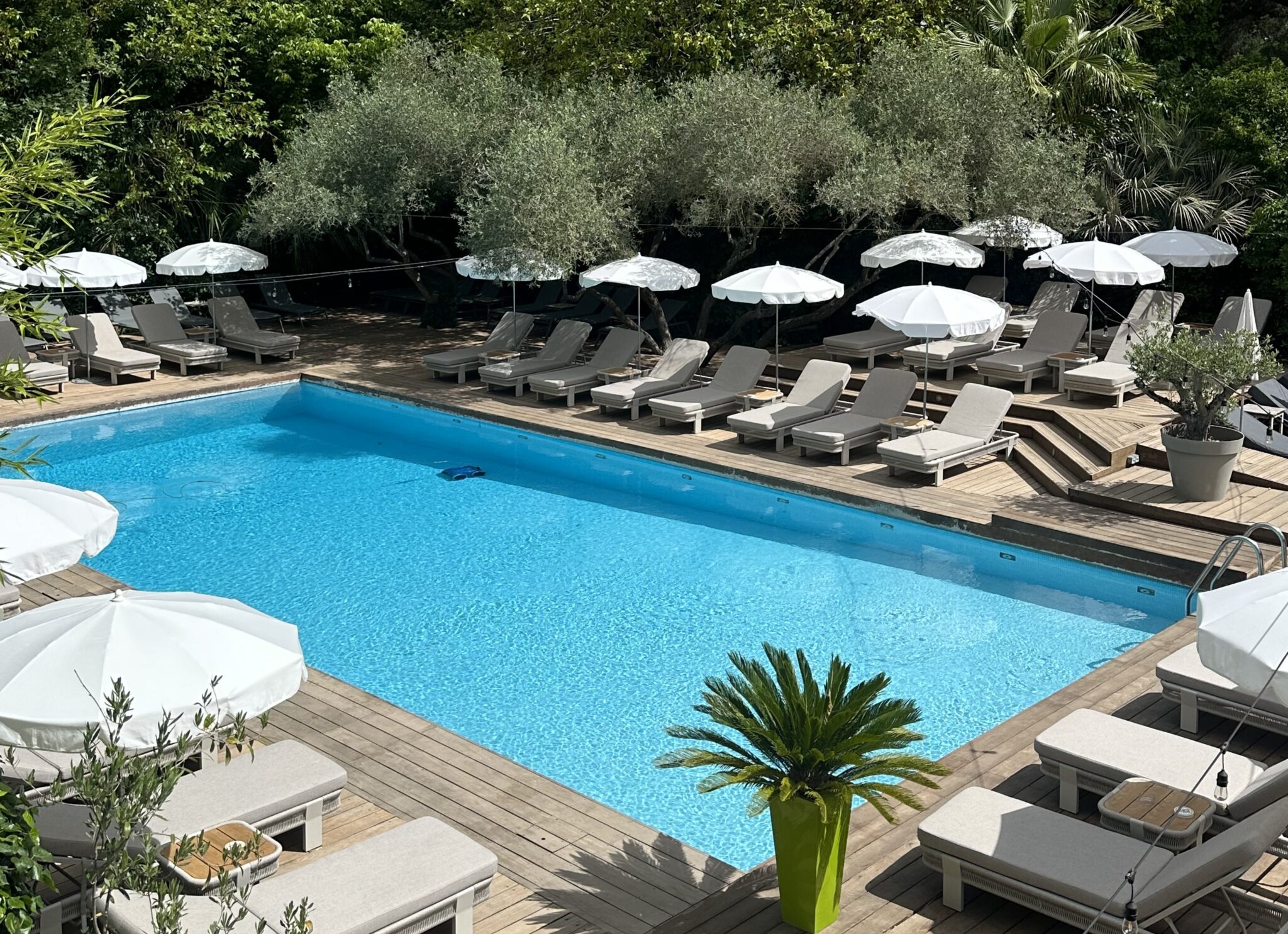 Notre piscine, de pins parasols et baignée par la lumière du soleil, crée une ambiance propice à la détente et à la convivialité.